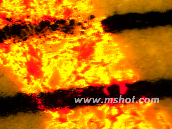 體視熒光顯微鏡是利用特定波長激發(fā)光源,使交叉點(diǎn)處的色料(一般為印泥) 發(fā)射熒光,通過觀察或測量熒光強(qiáng)度的變化來判定朱墨時序。印泥是一種強(qiáng)熒光物質(zhì),對紫外線和短波可見光有強(qiáng)烈吸收,并產(chǎn)生熒光,其中以波長470nm 左右的青色光為激發(fā)光時的熒光強(qiáng)度最大。而書寫、打印、復(fù)印色料對此波長的激發(fā)光不吸收,難于產(chǎn)生熒光。我們借助于熒光顯微鏡,通過正確的選擇激發(fā)光源、照明條件、濾光片,提高交叉點(diǎn)處印跡與書寫色料之間的亮度反差,進(jìn)而區(qū)分印文與字跡先后形成的層次特征。