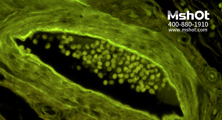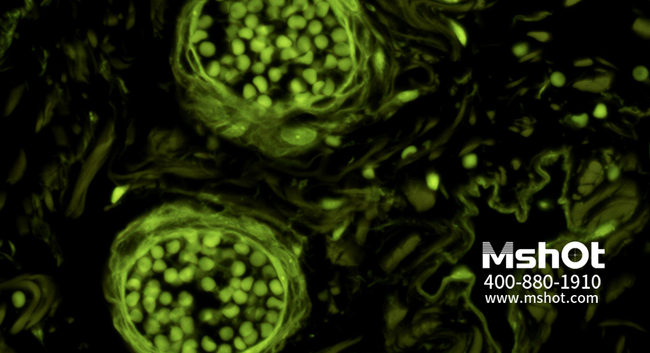 藍色熒光模塊拍攝的熒光顯微圖片。 (操作提示:點擊圖片或使用鍵盤上的方向鍵來轉換要查看的圖片)