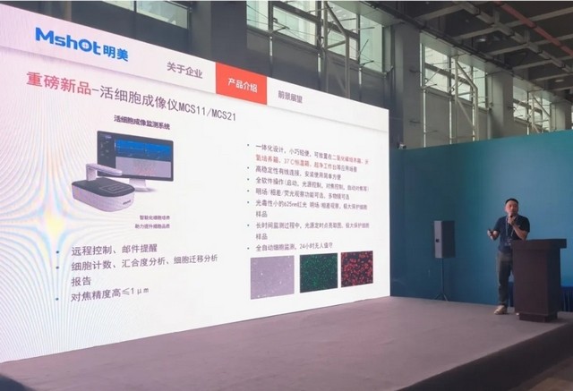 在備受關(guān)注的“干細胞治療創(chuàng)新發(fā)展論壇”上,Mshot明美市場部負責(zé)人以深入淺出的方式,向與會嘉賓介紹了明美的發(fā)展歷程、產(chǎn)品介紹以及前景展望。重點圍繞活細胞成像儀MCS21的實時監(jiān)測能力、倒置顯微鏡MIX60的靈活應(yīng)用以及多重?zé)晒鈹?shù)字切片掃描系統(tǒng)MES200的高效掃描等特性進行了詳細闡述。這些產(chǎn)品不僅體現(xiàn)了明美對干細胞治療行業(yè)的理解,更展示了明美在業(yè)內(nèi)領(lǐng)先的研發(fā)和生產(chǎn)能力。