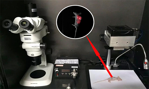 檢測(cè)標(biāo)記物在帶腫瘤小鼠的各器官和腫瘤部位的分部情況,封閉的暗室設(shè)計(jì),紅外和明場(chǎng)的觀測(cè)可隨時(shí)轉(zhuǎn)換,結(jié)合軟件的偽彩處理,實(shí)現(xiàn)腫瘤定位