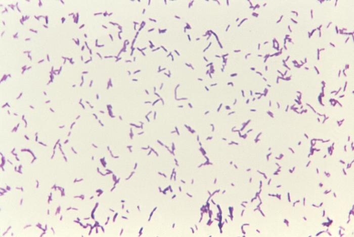 經(jīng)革蘭染色后,在顯微鏡下呈紫紅色,屬于革蘭氏陽性桿菌
